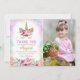 Rosa Guld Blommigt Unicorn Birthday Photo Tackto You Card