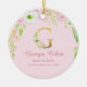 Rosa & Guld Brev ’G’ Blommigt Monogram Birdstat Julgransprydnad Keramik