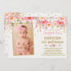 Rosa & Guld Boho Blommigt Baptism & 1:a födelsedag med Inbjudan och feminin första födelsedagsinbjudan med drömamcatcher för blommigt av vattenfärg och konfektin från guld glitter