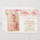Rosa & Guld Boho Blommig Dop & 1-års Födelsedagsinbjudan