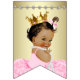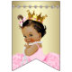 Etniskt ballerinaprinsessa baby shower-banner med bedårande etniskt ballerinaprinsessa som bär en pärlhalsband, guldkrona och skrynklig rosa tutu på en snygg rosa och guldpärlsbakgrund med elegant guldfärgad text Ribbons & Pearls. Du kan ändra bakgrundsfärgen på banners och ta bort bokstäverna för att lägga till dina egna.