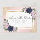 Komplettera era blå och firande i bröllop med dessa blå och bröllop spara datum-kort för elegant med blå och blommigt och grönaktig inramning av rosa i bröllop med guld konetti. Matchande objekt är tillgängliga.