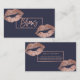 Eleganta moderna, stilfulla och enkla krön som visitkorten med elegant skrivar, räcker bokstäverstiltypografi med ramen och läppar för faux den rosa guld- på en marinblå anpassadebakgrund. En enkel och yrkesmässig design