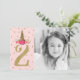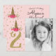 Rosa Guld Glitter Enhörning 2 2-års Födelsedagsfes Inbjudningar