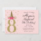 Rosa Guld Glitter Enhörning 8 8-års Födelsedagsfes Inbjudningar