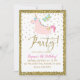 Rosa & Guld Glitter Enhörning Flickor Födelsedagsf Inbjudningar