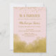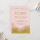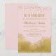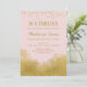 En elegant rosa- och guld-födelsedagsinbjudan med guld konetti-damm överst och guld vid grund.