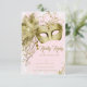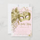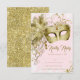 Rosa och guld maskeradfest RSVP med vacker guldsmyckad fjädermask på en elegant rosa bokeh-bakgrund och guldglitterdesign på baksidan. Denna vackra rosa och guld maskeradfest RSVP kan enkelt anpassas för ditt evenemang genom att helt enkelt lägga till dina detaljer i den typsnittsstil, färg och formulering du väljer. Du kan också ändra bakgrundsfärgen.
