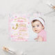 Rosa & Guld Glitter Sjöjungfru Foto 1:a födelsedag Inbjudningar