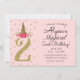 Rosa Guld Glitter Enhörning 2 2-års Födelsedagsfes Inbjudningar