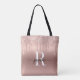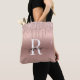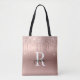 Elegant Girly Modern Glam Roséguld Glitterdrop Metallisk Initial Monogram Namn Signatur Skript Anpassad Personlig Toteväska. Denna design med ditt förnamn i en snygg handstilsfont med svans, monogram initial på rosa roséguld falsk ombré metallisk folie med glam glitter som droppande kant. Dessa är enkla att lägga till ditt eget namn. Bra feminint gåvpresent för födelsedag, bröllop, jul, bröllopsdusch, 16-årsfest, möhippa eller för examen och den är för tjejen som gillar glänsande stiliga saker.