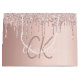 En rosa guld falskt metallisk bakgrund med falska rosa guld glitterdroppar, målarfärg som droppade effekt. Anpassa med namn och monogram initialer. Texten: Namnet skrivs med en modern handskriven stils script. Perfekt för födelsedagar, baby shower och bröllopsshower.