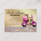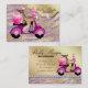 Bagerimuffinvisitkorten med roligt sparkcykelkvinna- och sebraglitter skrivar ut.