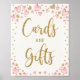 Rosa Guld Hearts-kort presenterar babyskor födelse Poster