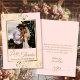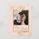 Tack vare det vackra rosa- och guld-färgaden har du tillgång till ett foto i en gyllene ram, omgiven av ornerade gyllene garderoller och snurrar. Rubriken lyder: Kärlek och Tack, med namnen nedan. Baksidan som en romantisk länkad hjärtegrafik tillsammans med en anteckning om anpassningsbarna och namnteckning. Det här tackkortet är enkelt, snyggt och elegant, och det är det perfekt sättet att tala om för dina vänner och din familj hur mycket du uppskattar deras kärlek och stöd.