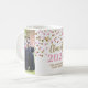 Anpassadets fotomallklass för 2024 studenten mugg med guld och rosa confietti mönster.