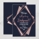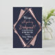 Eleganten, chic och moderna med en retro vibe, den faux utskrivavna rosa guld- geometriska diamanten formar skisserar på marinblått, mauve, och rodna rosa diamantutklipp, "ska dig är min brudtärna?", Brudtärnainbjudningar. Denna klassiker och sofistikerade design är perfekta för trendiget och snyggtblivande brud som önskar att göra deras maid of honorkänselförnimmelsesakkunnig och älskat. Personifiera med ditt egna meddelande på bekläda såväl som en skräddarsy monogram som är initial på baksidaen. All fototryckdesign.