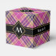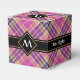 Rosa, gyllene gulter och blå tartandesign. Sömlös mönster. Anpassningsbar och monogram.