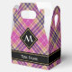 Rosa, gyllene gulter och blå tartandesign. Sömlös mönster. Anpassningsbar och monogram.