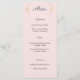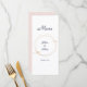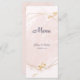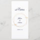Ett menykort för elegant bröllop-mottagning designat med bakgrund, text i marinen och Guld-högdagrar. I texten på framsidan finns: Menu, Bride and Groom's First Namn och Bröllop Date. Den omvända sidan innehåller: Appetzer-, Entre- och Dessert-markeringar. Om du vill anpassa dig infogar du bara dina uppgifter i vår enkla mall och ersätter exempeltexten. Se till att hela insamlingen av Rosa, Guld och marin Bröllop för matchning med delara.