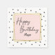 I trendig contemporary stil har den här födelsedagsfestens pappra napkin-design spridits i svart polka dots över en vit bakgrund. En gyllene dubbla ram med dammig rosa omger texten i stil i feminin. Ansikte-spådomar med handskrivet manusskript i stora bokstäver utger "Grattis på födelsedagen" för att lägga tonvikt på lycklig tillfälle. Anpassa till Guest of Honors Namn. Den här mångsidiga utformningen passar för interpoleringar, tonåringar och vuxnor.