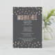 Eleganta, snygga och moderna falska tryckta roséguld prickar på svart bakgrund, välgångskort. Denna klassiska och sofistikerade design är perfekt för det klassiska, trendiga och stiliga paret som gifter sig. Personliggöra med eget meddelande på framsidan och ett anpassat monogram på baksidan. Alla foto tryck design.