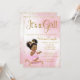 Rosa och guld-babyduschinbjudan med ätbara afrikanska flicka med söt afro-hår och söt rosa tutu och kudde mot bakgrund av rosa och guld glitter. Den här inbjudan till babyduschen i rosa och guld är lätt att anpassa för ditt evenemang genom att helt enkelt lägga till dina uppgifter.