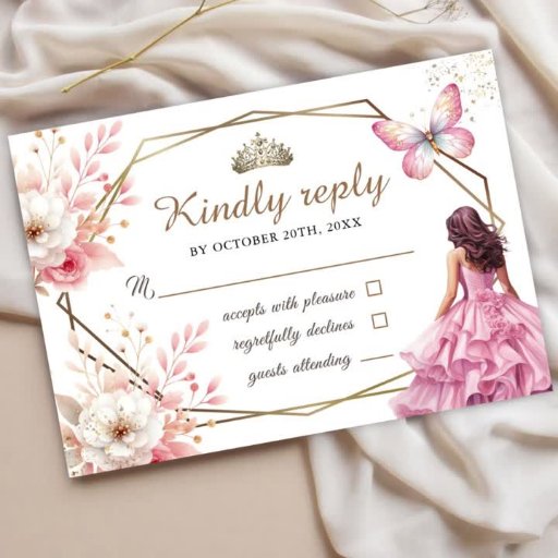 Rosa Guld Princess Tiara Blommigt Sweet 16 Inbjudningar