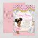 Rosa och guld prinsessa baby shower inbjudningar med söt etniskt afroamerikansk prinsessa ballerina som bär en söt rosa tutu, pärlhalsband och vacker guldkrona på en vacker rosa och guldkurdinbakgrund. Dessa vackra rosa och guld afroamerikanska baby shower inbjudningar kan enkelt anpassas för ditt evenemang genom att helt enkelt lägga till dina detaljer i den teckensnittsstil du föredrar.