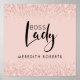 Rose Gold Blush Rosa Glitter Boss Lady Personlig Poster... En omtyckt present som kan ges till en kvinnlig chef-entreprenör att hänga på hennes kontorsvägg. Om en kvinna i ditt liv har startat ett företag, så är detta en genomtänkt present till jul, födelsedag, mors dag eller till invigningen av ett nytt företag... en affisch med hennes namn under en konstnärlig logotyp för Boss Lady. Mot en delikat rosa bakgrund har vår Boss Lady-affisch luxuösa rosa glitteröverdrag högst upp och längst ned för extra glans. Du kan enkelt ändra namnet i personaliseringsmallen.