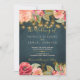 Mall för inbjudan till Luxury elegant bröllop med rosa och persiko-peonin ro och blommar gräns och golden rustic strings eller twinkle ljus på midnattsblå kriterer. — inbjudan lämpar sig för vår eller sommarnattromantiska bröllopsfester eller trädgårdsodlingar utomhus.