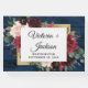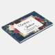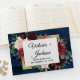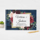 Utformningen har en mörk marin botten av blått lingstall av trä som dekorerats med en elegant blommigt av blommor av peony ro, eucalyptus greenery med mera i burgundsnyans, Marsaladött, maron, rosa osv. Utformningen har också ett utskrivet guld färgad gräns under blommigtens andetag för ett modernt utseende.