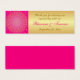 Tack vare den exotiska shock rosa- och guld-bröllopsförmånen har märkrn en stor medaljon från rullan i centrala guld med mönster på den med ornaterade, snabba hjärtan som detaljerar den med guld stjärnor och punkter som ljög över ovanpå en fuchsisk bakgrund med en annan lagrar av ljusa bra-lilor och scrollsar på den. Du kan också använda det som ett informationskort, en bröllop-webbplats eller ett presentkort, eller ett välvilligt eller välgörenhetskort genom att ändra texten i enlighet med detta. ****NOTERA ATT ingen av inslagen på detta kort är upphöjda eller präglade. Allt trycks platt. Kortet skulle vara en perfekt i vår, sommar, fall eller vinterinbjudningar till indiska, hinduiska eller muslimska bröllop eller förlovningar. OBSERVERA ATT om du ändrar typsnitt eller storleka på teckensnittet kan en del av texten komma att brytas av. Allt skrivs ut när du ser det på bildskärmen. Jag kommer inte att se ditt kort och Zazzle kommer INTE att korrigera någonting (typos, justering osv.). Anpassadet är text och papper text. Om du behöver hjälp med det här kortet, skicka e-post till mig INNAN du ställe beställer. Om du vill ha några andra matchande objekt eller vill att någon annan designtyp som inslag läggs till, t.ex. Ganesh, eller en symbol osv., skicka din begäran till niteowlstudio@gmail.com.