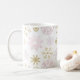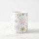 Mysigt upp i stil med detta festliga vinterkaffe mugg, som har en rosa och guld-glitter-snöflammande mönster. Perfekt för att sippa kakao, te eller kaffe under babyduschar, vintermöten eller vardagliga stunder hemma. En charmig säsong-gåva eller fest med mjuk elegant.