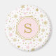 Den vintermatade magneten med rosa och guld snöflingor, faux glitter-stjärnor och konetti sprinkles. Anpassa magnet med din första - Underbar för party favors!