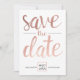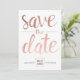 Denna spara daterainbjudan kan personifieras med ditt foto på baksidaen och presenterar en faux som rosa guld omkullkastar borstar skrivar stilsorten.