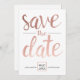 Denna spara daterainbjudan kan personifieras med ditt foto på baksidaen och presenterar en faux som rosa guld omkullkastar borstar skrivar stilsorten.