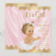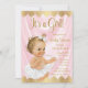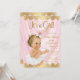 Rosa och guld baby shower-inbjudan med söt liten ballerina flicka iförd en skrymmande vit tutu och en pärlhalskedja på en vacker rosa och guldbakgrund. Denna eleganta rosa och guld baby shower-inbjudan kan enkelt anpassas för ditt evenemang genom att lägga till dina uppgifter i den typsnittsstil och färg och formulering du väljer. Du kan också ta bort bakgrunden och lägga till den färg du väljer. Detta är en tryckt design med ingen verklig spets, glitter, pärlor etc.