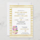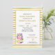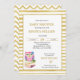 Rosa, Vita och Guld Baby Shower-inbjudan för att ta med en bok-temad dusch. Cute rosa uggla sitta på en skorsten av bokar. Perfekten duschar inbjudan för flicka.