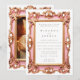 Anpassa denna vackra, eleganta, rosa med guldhöjdpunkter eleganta, vintageinspirerade designer ramade bröllopsinbjudan här och nu online med dina egna bröllopsdetaljer. Klicka bara på knappen Anpassa för att redigera texten och teckensnittet som du önskar och byt ut fotografiet mot ditt eget (för bästa resultat, använd ett fotografi i stående format)