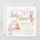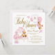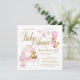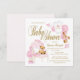 Flickor watercolor baby shower-inbjudningar med söt björn, klossar, elegant stol, prinsessakrona och söt overall med text som du kan ändra. Baksidan har en söt rosa prickdesign. Denna rosa och guld baby shower-inbjudan är lätt att anpassa för ditt evenemang genom att helt enkelt lägga till dina uppgifter. Detta är en tryckt design utan verklig glitter.