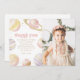 Säg tack till vänner och familj för att de deltog i din lilla enhets födelsedagsfest med denna eleganta rosa, lila och guld yttre rymden födelsedagsinbjudan.