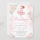 Cute Pastel rosa lille ballerina-födelsedagsinbjudan med blommor från rosa guld.