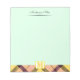 Rosa Gult Tartan Anpassningsbar Skript Monogram Celadon Anteckningsblock Elegant, snyggt och trendig anpassade anteckningsblock innehåller "personlig namn anteckningar" överst, "personlig monogram" och rosa-gult plaid tartan i grund på Celadons bakgrund. Anpassa det här vackra anteckningsblocket som en underbar gåva genom att lägga till ditt namn eller text/ändra teckensnitt, färg, storleka och position.