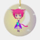 Rosa Haired Neko Animeflicka, prydnad Julgransprydnad Keramik