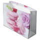 Födelsedagspresentpåse med en läcker bild som visar ett torn av rosa makaroner med hallon placerade runtomkring. Förtjusande gudomligt.