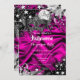 Halloween Deep rosa silke & Silver MasqueraFödelsedagsfest inbjudan. Söt silver och svart diamantmask och luddjuveler. Observera: All platt bilder! Använda för alla åldrar.
