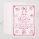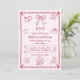 Hand plockade rosa skrev in bröllopsinbjudan till Fransk stil. Inbjudan dina gäster med den här snabba och vismliga inbjudan. Den innehåller handritade illustrationer av flera vinklade dockor, inklusive hjärtan, ring och en båge i magenta på ljus rosa och vit bakgrund. Det handskrivna teckensnittet och ram med hjärtan i hörnen ger en trevlig fingervisning som perfekt återspeglar glädjen och upprördheten hos er speciella dag samtidigt som gästerna bjuds in på ett unikt och snabbt sätt.