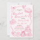 Rosa Hand plockade Möhippa Brunch party, Hand plockade Doodles Rosa Brunch och Bubly Inbjudningskort för möhippan