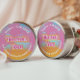 Utformning av roligten med rosa- och gult-"Tack"-återdesign. Namn i den brud som ska vara och dejten står högst upp och "för att fira min bach party" står på grund. Den här färglösa designen har söt rosa handflatan träd art och gör ett underbart tillägg för party favors.